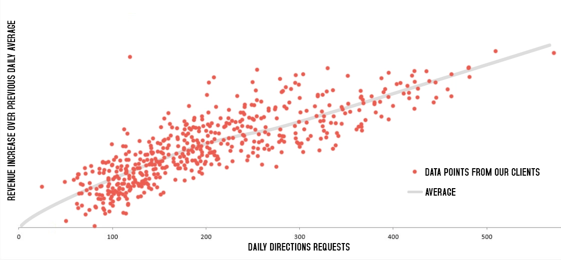 Taking real-life data from our clients, when it comes to retail businesses, we have found no greater correlation than that between revenue and driving direction requests.